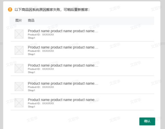 (2)若存在搬家失败的商品,会出现弹窗