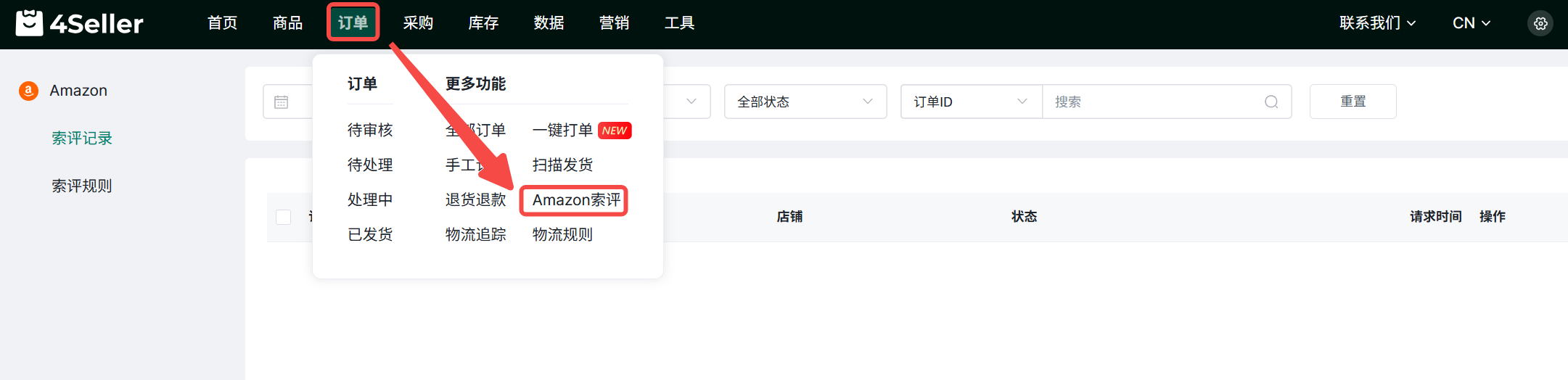 (3)仅支持在4seller处理发货的订单。1、入口:点击订单-Amazon索评