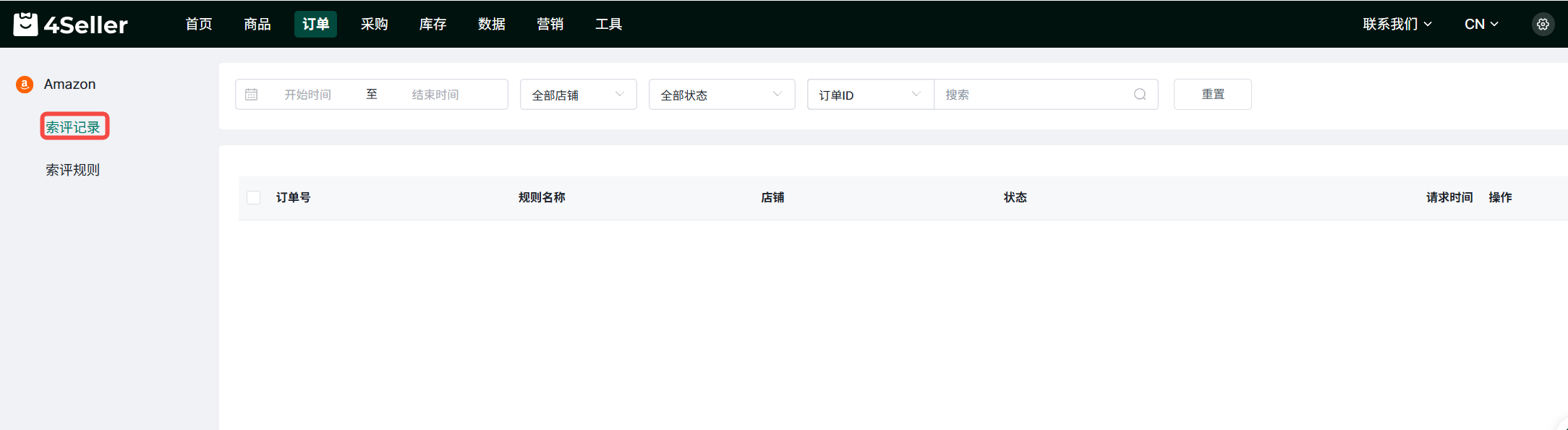 4Seller支持设置索评规则,针对符合条件的亚马逊订单,在发货后自动向买家发送索评邀请,且支持索评记录