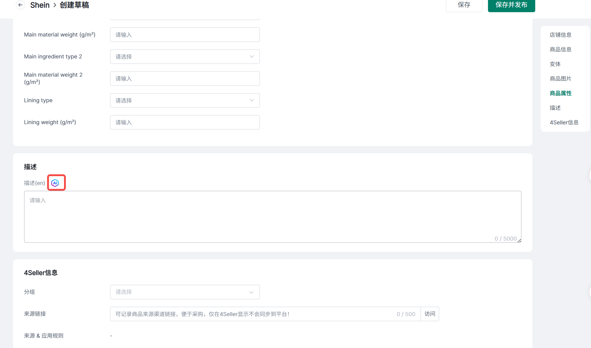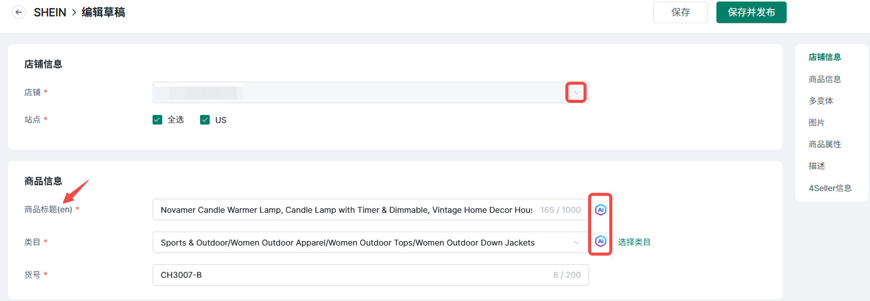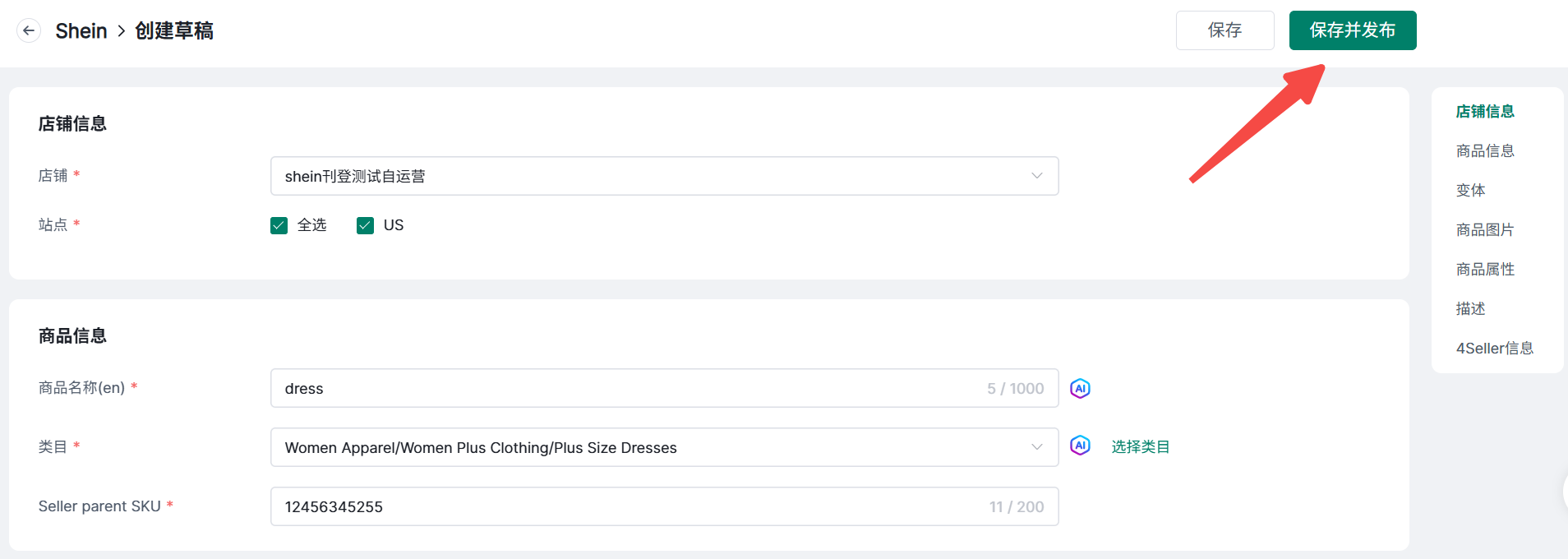 4Seller支持创建并刊登SHEIN商品场景一:单个刊登